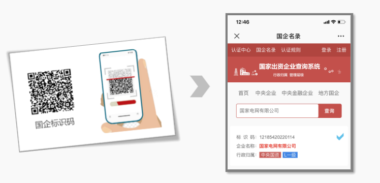 2、賦予唯一國企ID,企業(yè)可以選擇使用數(shù)字ID或二維碼進行展示。